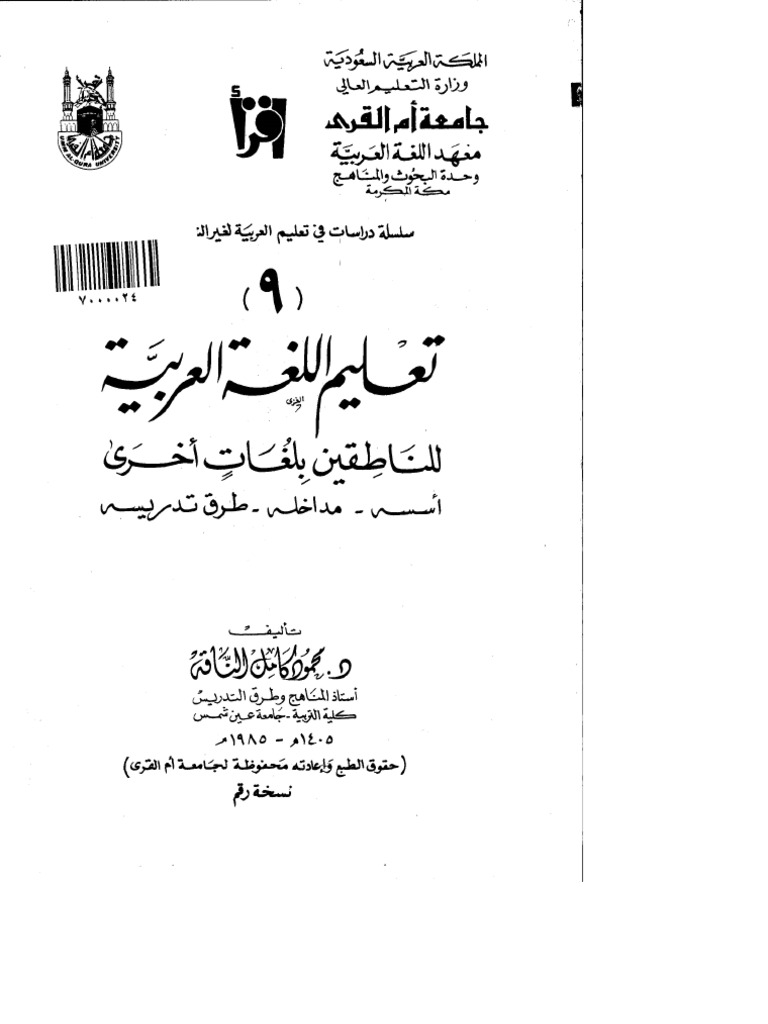 Pdf أساسيات تعليم اللغة العربية للناطقين بلغات أخرى Pdf Ibrahim Mansur Academia Edu