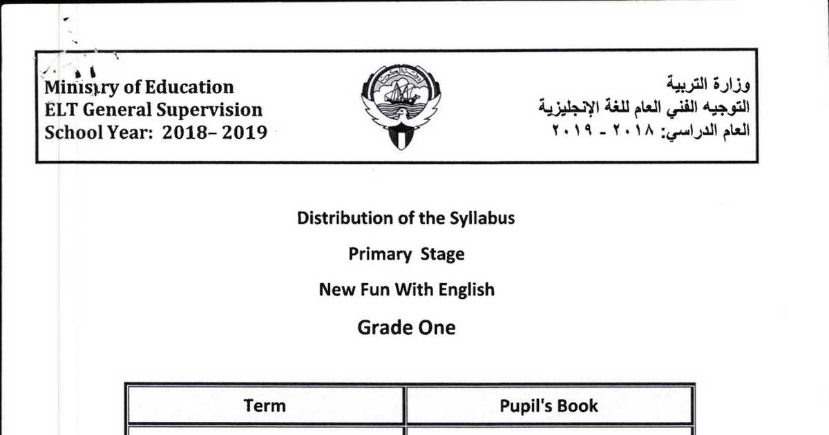 توزيع منهج اللغة الانجليزية للمرحلة الابتدائية 2018 2019 مدرستي الكويتية
