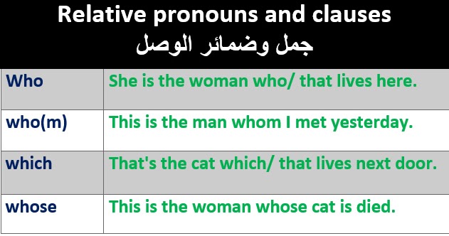 شرح ضمائرالوصل Who Whom Which Whose فى الجمل الموصولة Relative Clauses