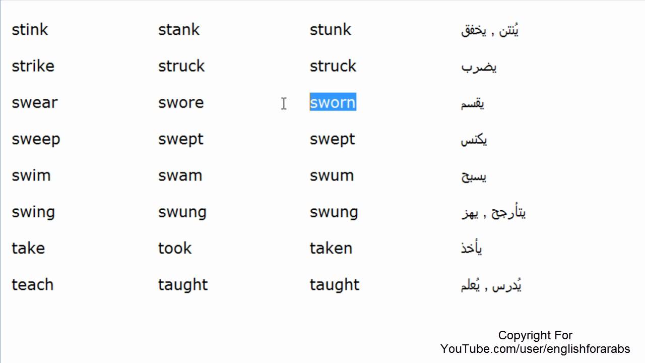 الافعال الشاذة الغير قياسية باللغة الانجليزية الجزء 12 Youtube