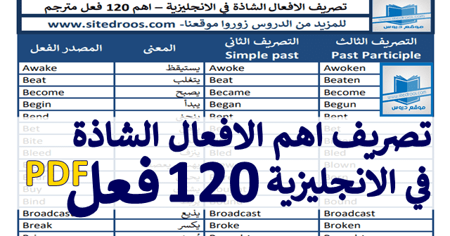 تصريف اهم الافعال الشاذة في اللغة الانجليزية 120 فعل مترجم Pdf