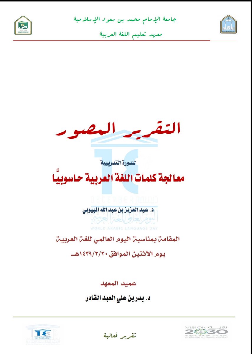 معهد تعليم اللغة العربية On Twitter اليوم العالمي للغة العربية جامعة الإمام إعلانات المعهد مناشط المعهد العلمية التقارير تقرير الدورة التدريبية معالجة كلمات اللغة العربية حاسوبي ا د عبد العزيز المهيوبي Https T Co Xvrabdq8uy Https T Co