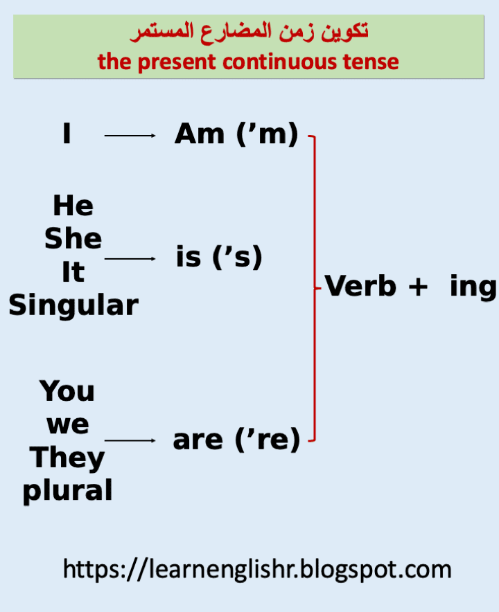 قواعد اللغة اﻹنجليزي Auf Twitter تكوين المضارع المستمر