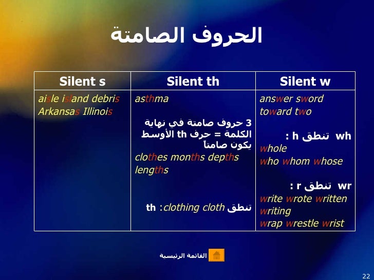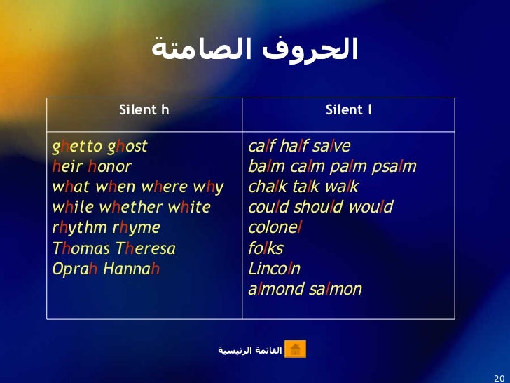 الحروف الصامتة في اللغة الانكليزية منتديات درر العراق