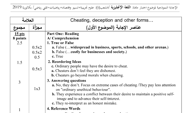 التصحيح الوزاري الرسمي اللغة الانجليزية بكالوريا 2019 شعب علمية