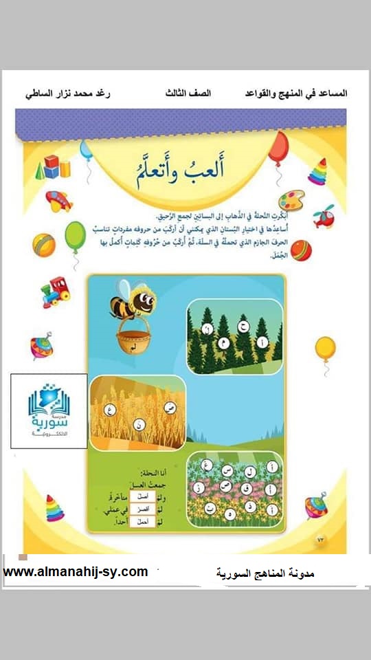 حل درس ألعب وأتعلم في اللغة العربية للصف الثالث الفصل الاول