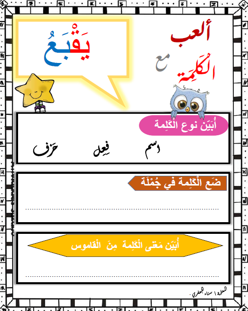 اوراق عمل العب مع الكلمة في اللغة العربية للصف الرابع الفصل الاول