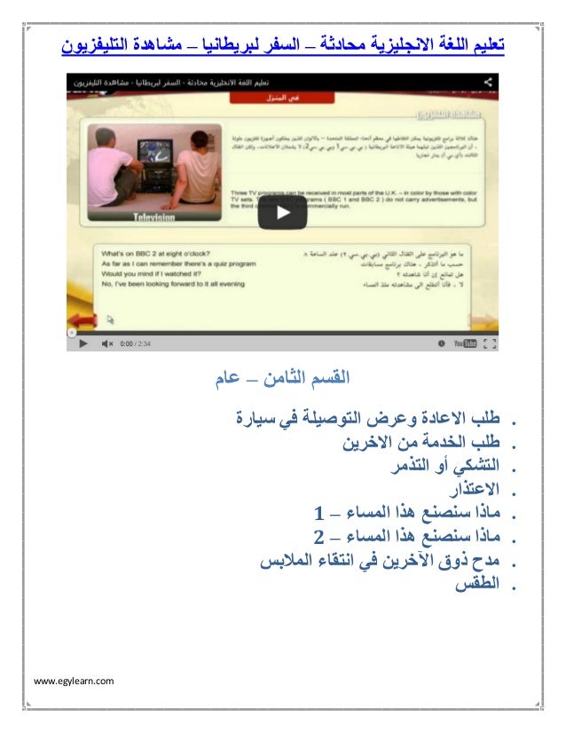 صفحه الاول من اللغة الانجليزيه للمرحله ثاني ثانوي