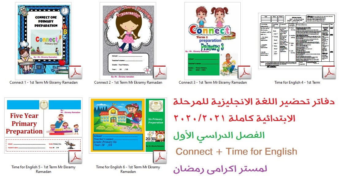 دفاتر تحضير اللغة الانجليزية للمرحلة الابتدائية كاملة 2020 2021 الفصل الدراسي الأول Connect Time For English لمستر اكرامى رمضان