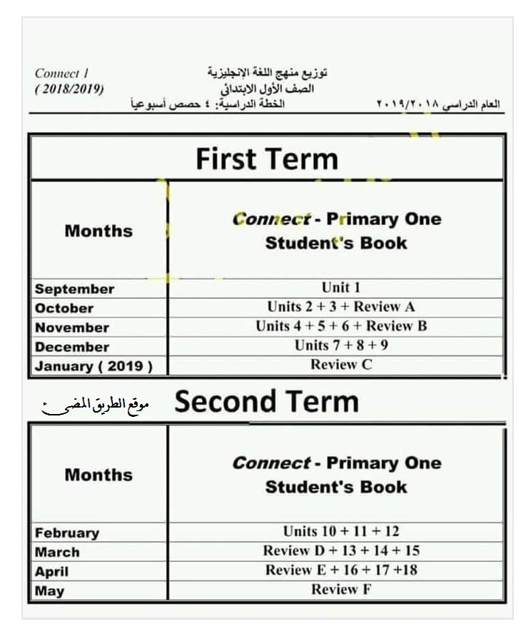 توزيع منهج اللغة الانجليزية للصف الأول الابتدائي ترم ثاني 2019 عام ولغات مذكرات تعليمية