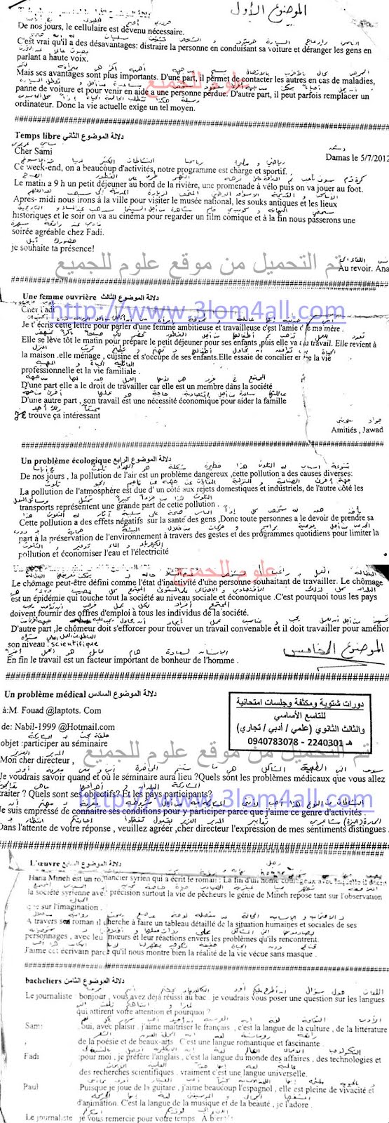 موضوع الفرنسي منهاج البكالوريا سوريا