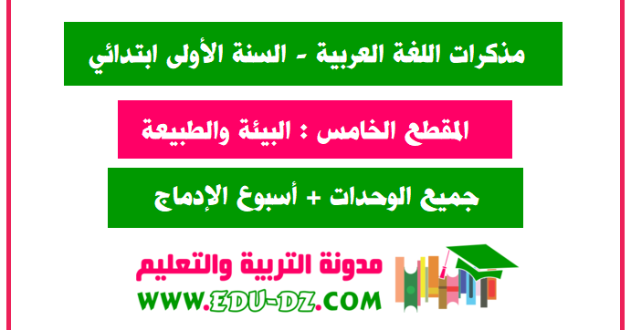 مذكرات المقطع الخامس البيئة والطبيعة جميع الوحدات و الأسابيع اللغة العربية 1 ابتدائي