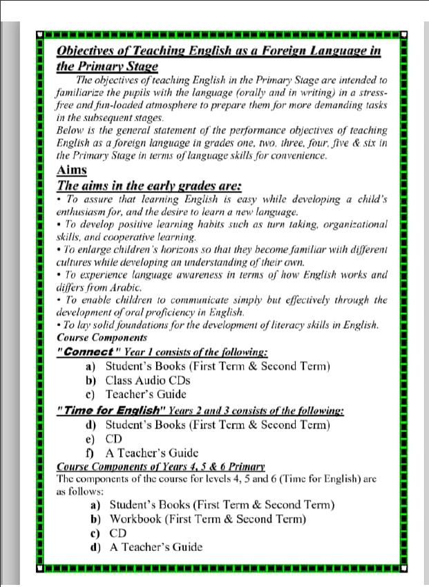 اهداف تدريس اللغة الانجليزية للمرحلة الابتدائية 2018