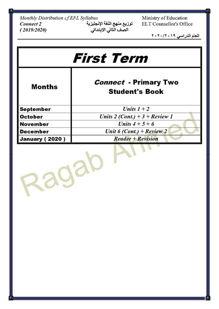 الخطة الزمنية لمادة اللغة الانجليزية المرحلة الاعدادية الفصل الدراسى الاول و الثانى 2020