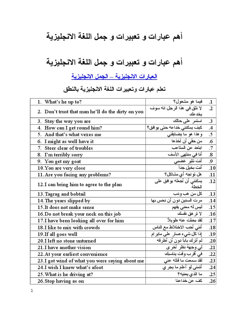 أهم عبارات و تعبيرات و جمل اللغة الانجليزية Docx