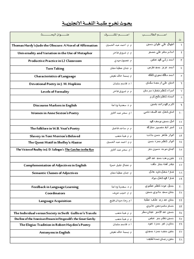 بحـــوث تخــرج طلبـــة اللغــة الانجليزيــــــــة Pdf