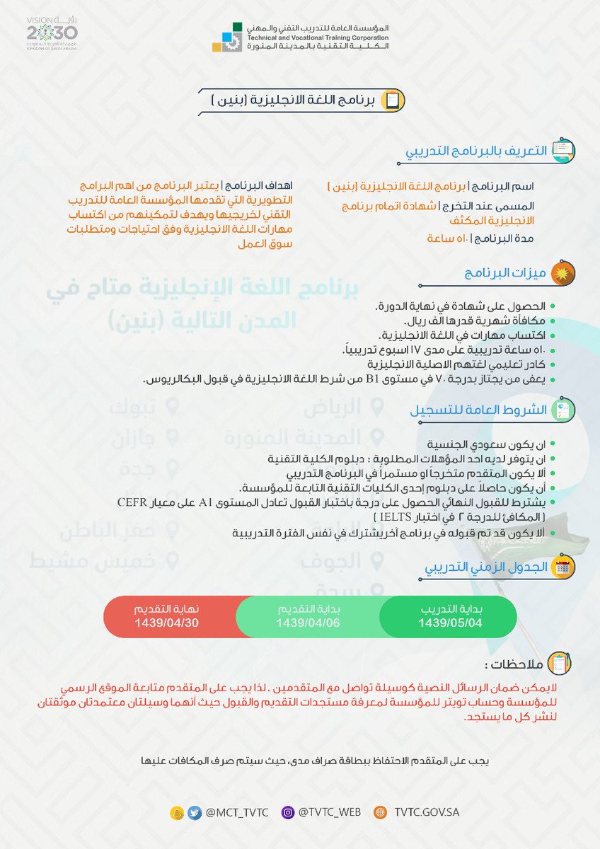 الكلية التقنية للبنين بالمدينة المنورة On Twitter مواعيد القبول في برنامج اللغة الانجليزية المكثف للفصل التدريبي الاول
