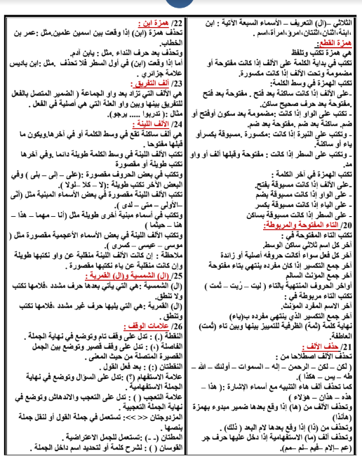 ملخص جميع دروس اللغة العربية للسنة اولى متوسط الجيل الثاني