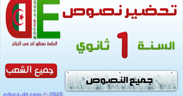 تحضير نصوص اللغة العربية للسنة الاولى ثانوي علوم تجريبية