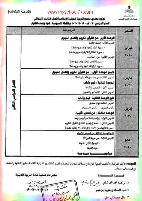 تحليل منهج التربية الدينية الإسلامية للفصل الدراسى الثانى للصفوف الرابع والخامس والسادس الابتدائى 2016 Omniawagdy