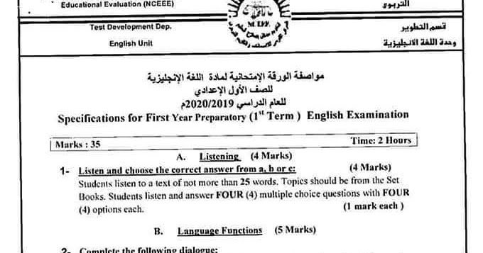 حمل جميع أسئلة اللغة الانجليزية التى وردت في امتحان الصف الاول الاعدادي الترم الاول 2020