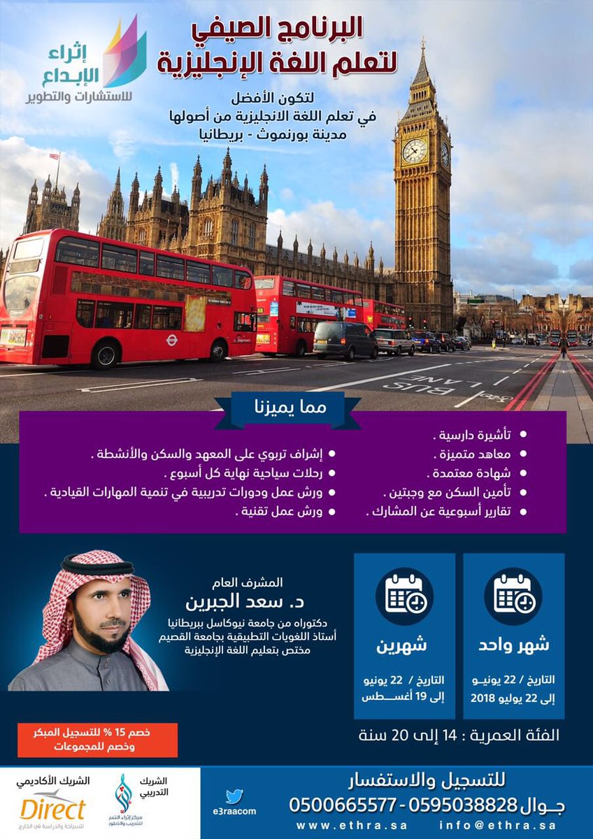 إثراء الإبداع Ar Twitter انضم الآن إلى البرنامج الصيفي لتعلم اللغة الإنجليزية في بريطانيا بورنموث لتكون الأفضل في تعلم اللغة الإنجليزية من أصولها المشرف العام على الرحلة الدكتور سعد الجبرين