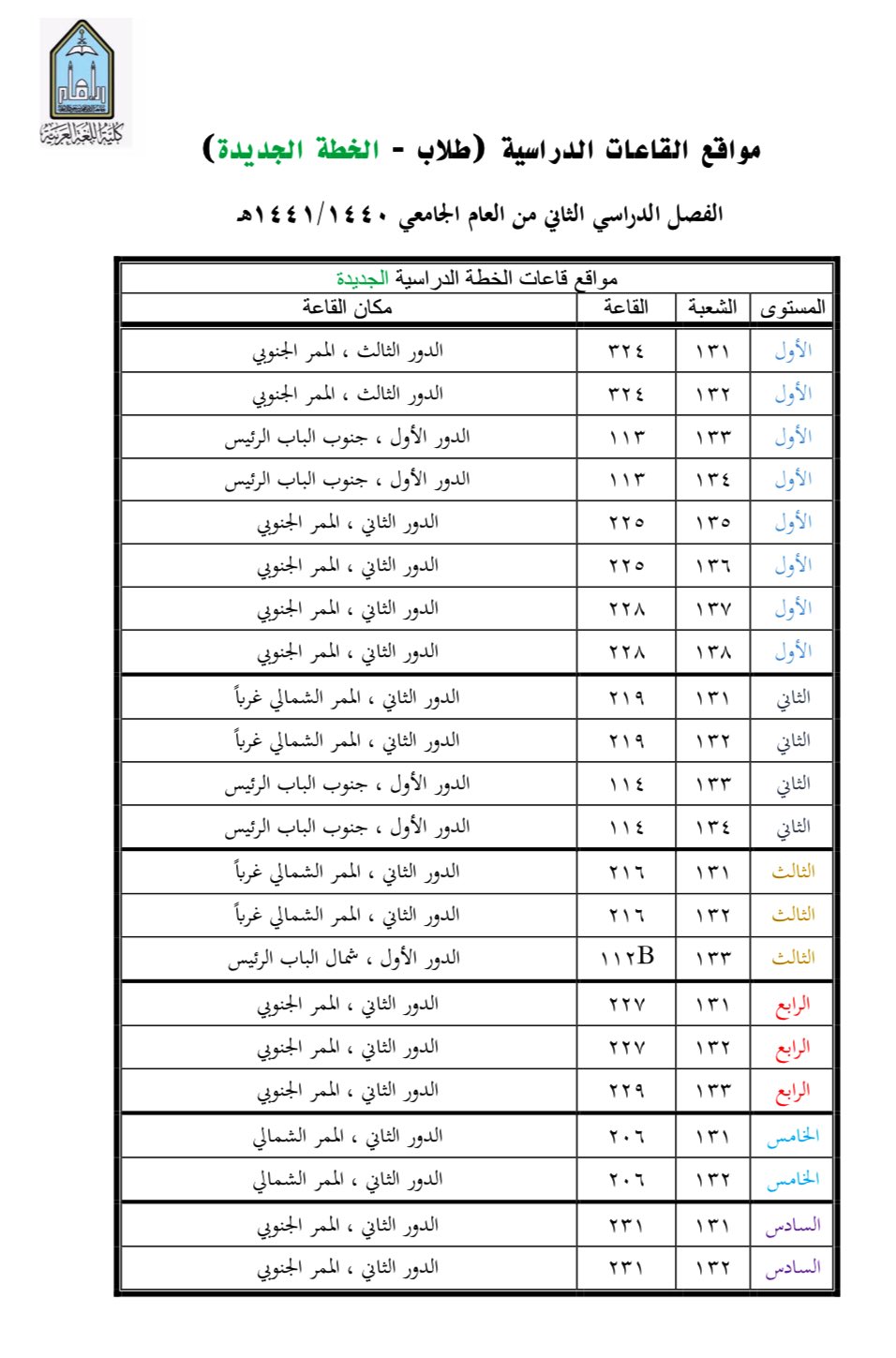 كلية اللغة العربية On Twitter للطلاب مواقع القاعات الدراسية في كلية اللغة العربية للفصل الدراسي الثاني ١٤٤٠هـ
