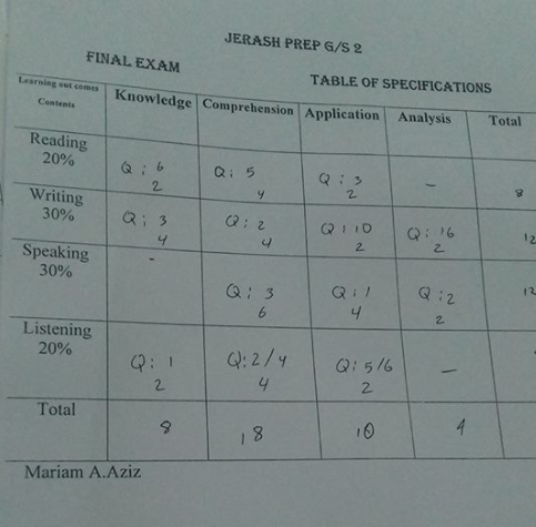 A A نموذج Word جدول مواصفات الإمتحان النهائي لمادة اللغة الإنجليزية الصف السادس الفصل الثاني منتديات صقر الجنوب