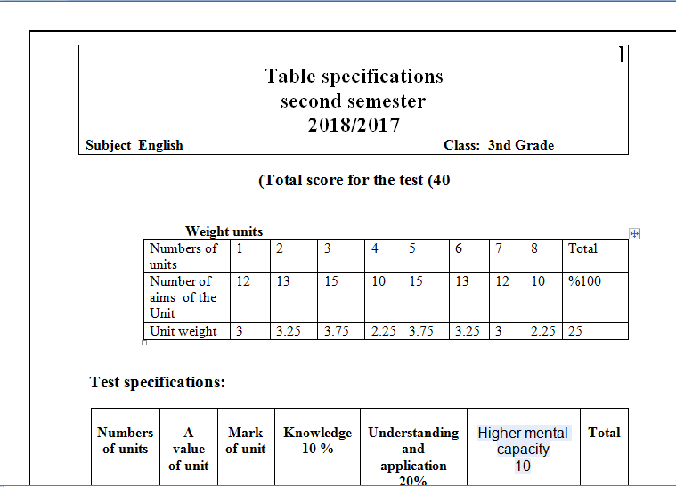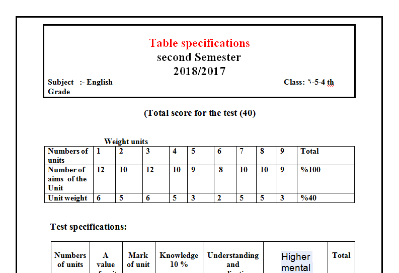 نموذج Word جدول مواصفات الإختبار النهائي منتديات صقر الجنوب Facebook