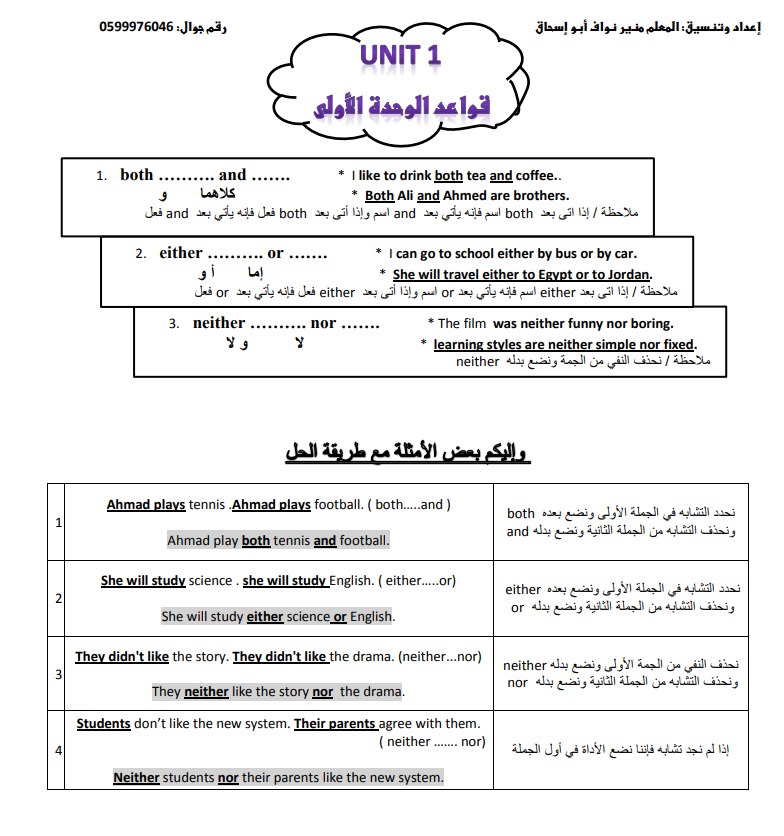 قواعد اللغة الإنجليزية الوحدة الأولى للصف التاسع أ حمود الشمري مدرستي الكويتية
