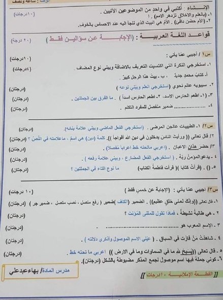 اسئلة عربي اول متوسط 2020 نهاية الكورس الاول نصف السنة