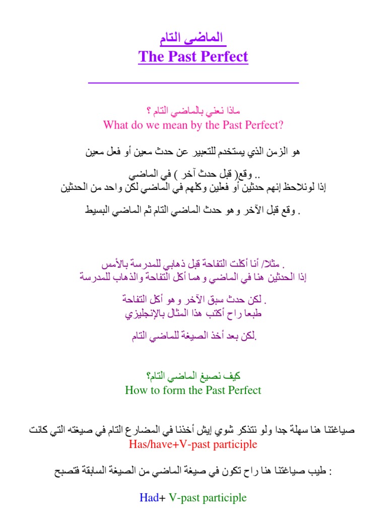 زمن الماضي التام في اللغة الانجليزية Pdf