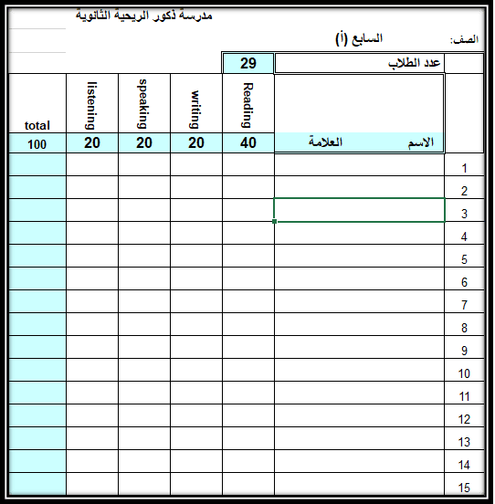 سجل علامات جانبي لمبحث اللغة الانجليزية من الصف السابع وحتى الصف العاشر منتديات المعلم الفلسطيني
