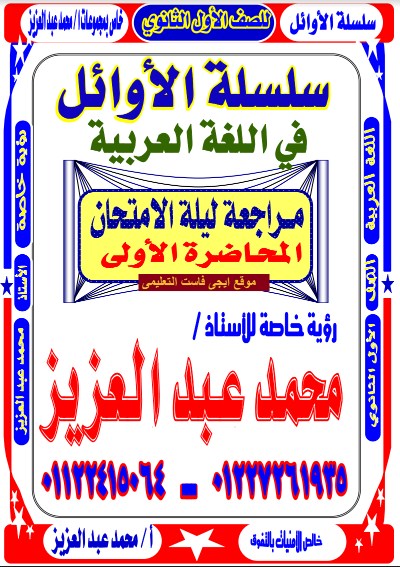 تحميل افضل مراجعة نهائية ومراجعة ليلة الامتحان في اللغة العربية للصف الاول الثانوى ملخص ومحاضرات العربى لاولى ثانوى ترم اول الاستاذ محمد عبد العزيز