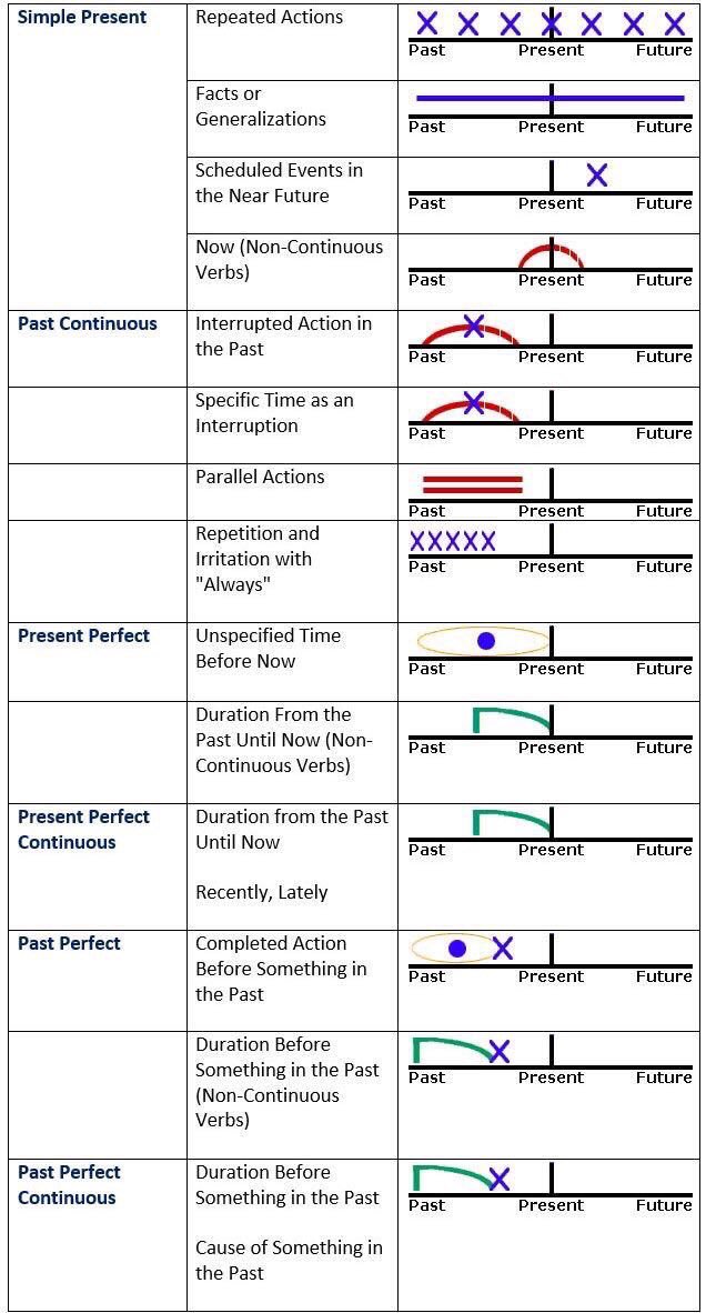 المدونة التعليمية Tenses Rules Table جدول لقواعد الأزمنة الانجليزية