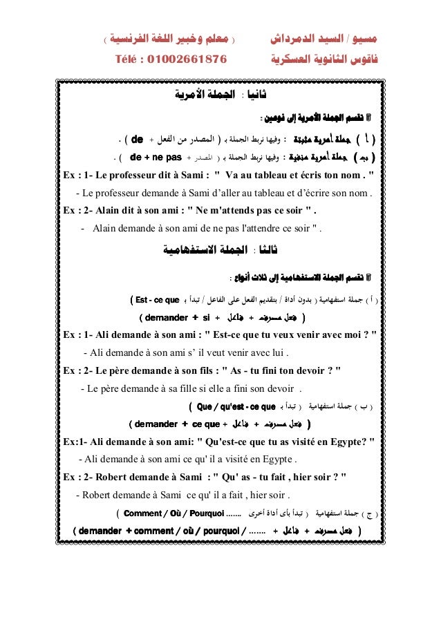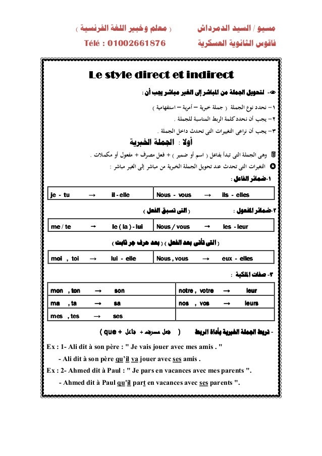 شرح المباشر والغير مباشر لغة فرنسية الصف الثالث الثانوي مدرسة اون لاين