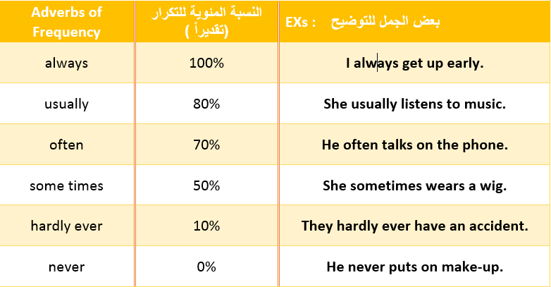 Adverbs Of Frequency ظروف التكرار الإنجليزية