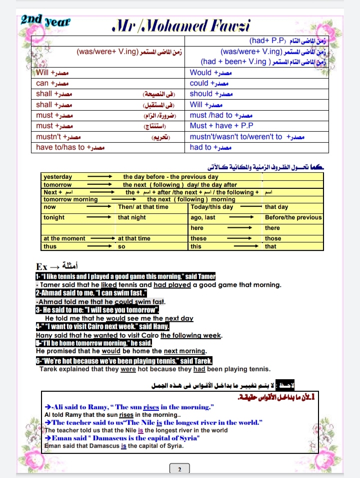 افضل مذكرة قواعد اللغة الانجليزية للصف الثانى الثانوى الترم الثانى 2020 اعداد مستر محمد فوزى