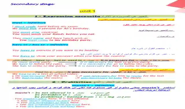 ملخص قواعد اللغة الانجليزية للصف الثاني الثانوي ترم اول ملزمتي