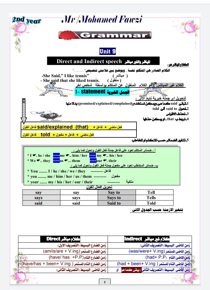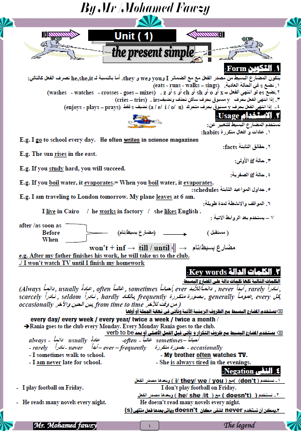 مذكرة قواعد اللغة الانجليزية المنهج الجديد للصف الثاني الثانوي الترم ا محمد فوزى