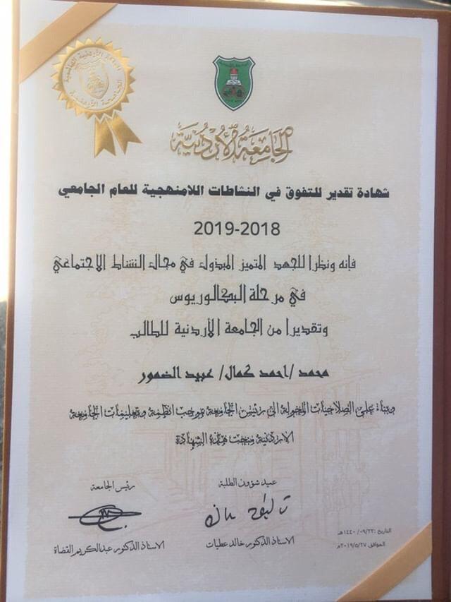 محمد الضمور يكر م على تفوقه في الجامعة الأردنية صور