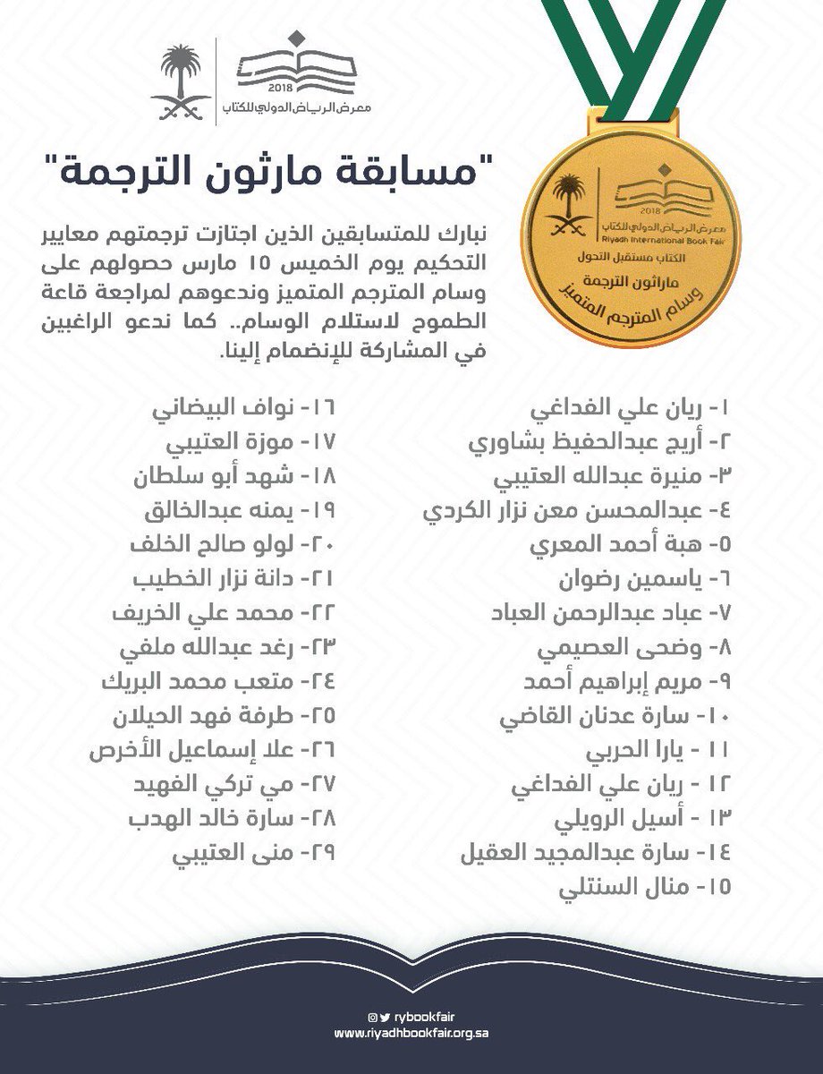 النشاط بكلية اللغات On Twitter تبارك أسرة كلية اللغات والترجمة Colt Ksu للطالب متعب آل بريك من قسم اللغة الإنجليزية والترجمة فوزه في ماراثون الترجمة الذي نظمه معرض الكتاب الدولي بالرياض ٢٠١٨