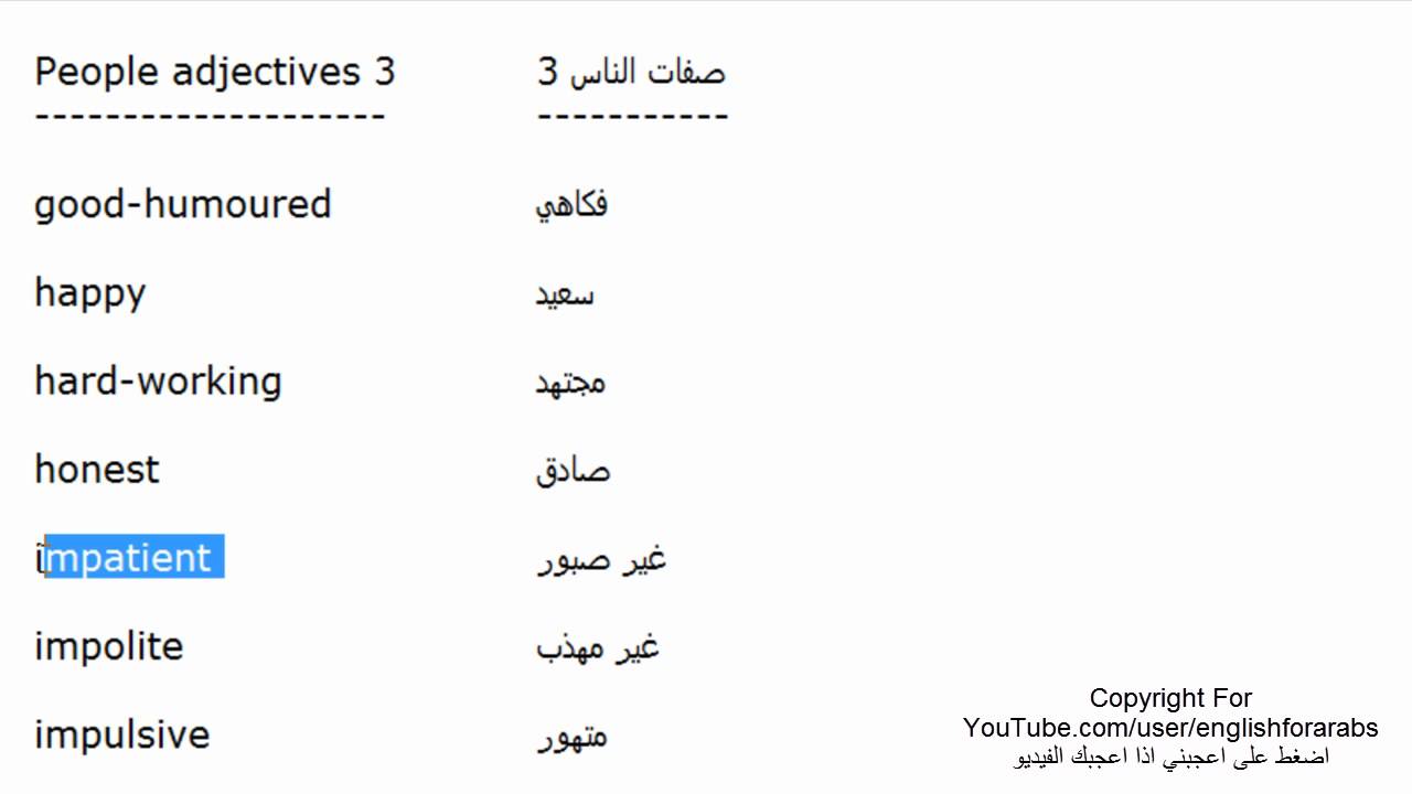 صفات الانسان باللغة الانجليزية الجزء 3 Youtube