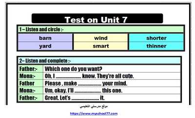 امتحان في اللغة الانجليزية على الوحدة الاولى مدرس دوت كوم