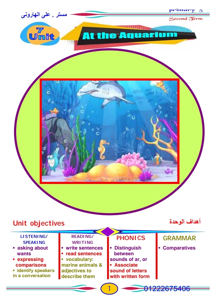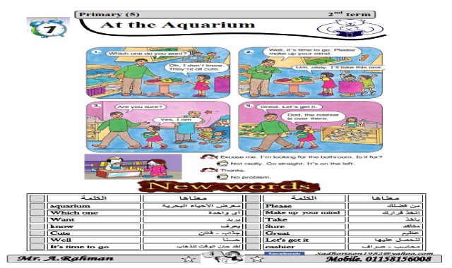 لغة إنجليزية للصف الخامس الإبتدائي نصف ثاني English الوحدة السابعة الدرس الأول At The Aquarium Youtube