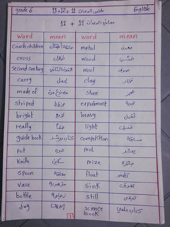 ملخص الوحدات 11 12 13 لمادة اللغة الإنجليزية للصف السادس الفصل الثاني منتديات صقر الجنوب