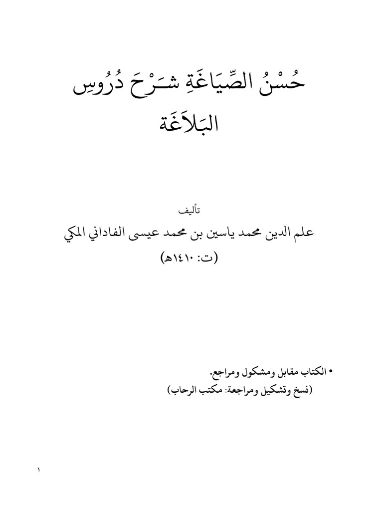 حسن الصياغة شرح دروس البلاغة Pdf