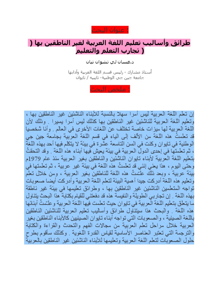Pdf طرائق تدريس اللغة العربية للناطقين بلغات أخرى Pdf Ibrahim Mansur Academia Edu