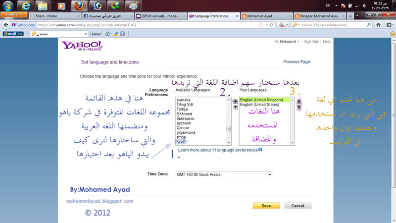 Mohamed Ayad كيفية تغير لغة البريد الالكتروني Yahoo بالصور