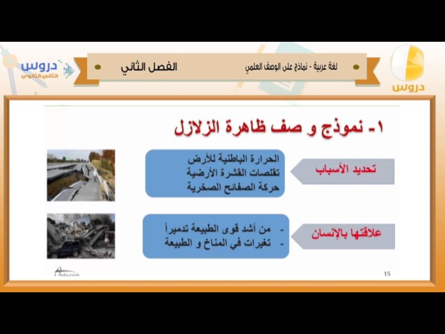الثاني الثانوي الفصل الدراسي الثاني 1438 لغة عربية نماذج على الوصف العلمي Youtube